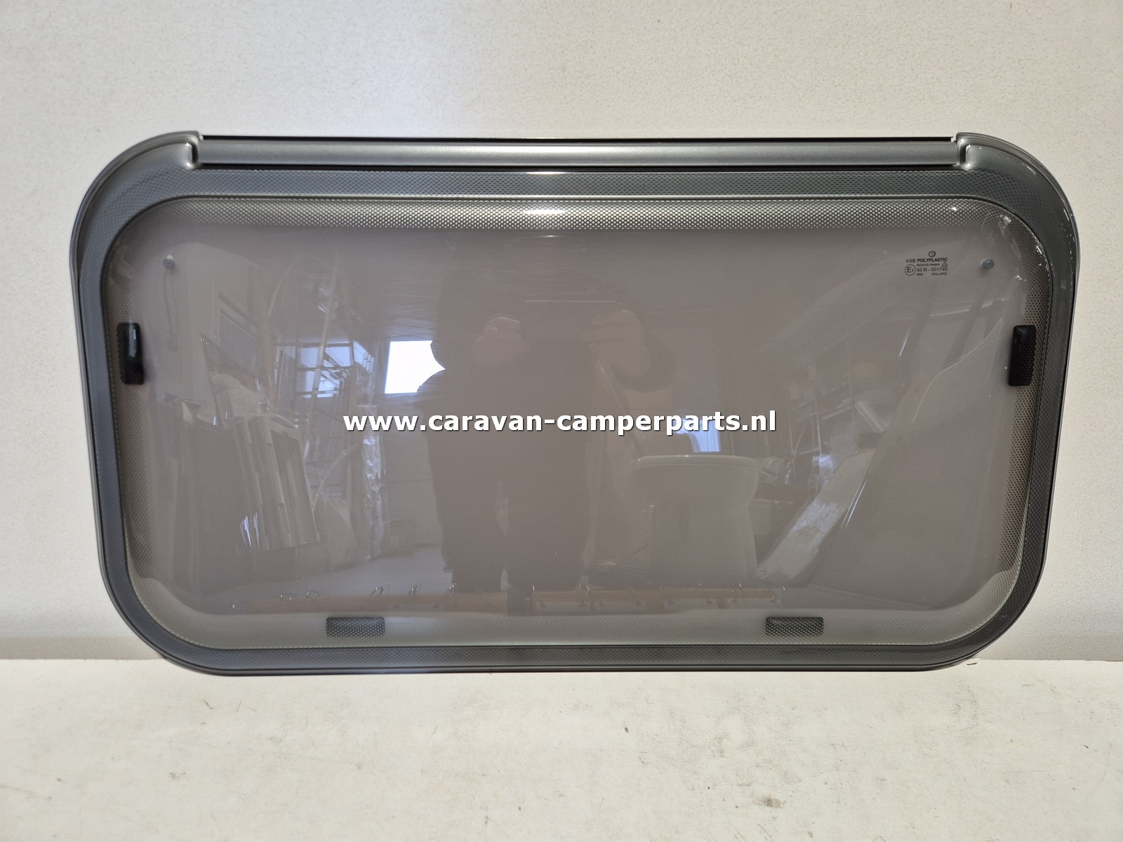 Eriba toilet raamAfmeting 76 x 43 cm Bouwjaar 2007PolyplasticHet is een gebruikt raam